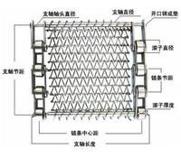 鏈條標號 節距P 鏈桿節距P1 鏈桿直徑D 網絲直徑D1 網帶螺距L 網帶節距J (P) (p) (p1) (D) (D1) (L) (J) C2042 25.4mm 25.4×*節 5~8mm 1.0~1.6mm 3~19mm 6.35~25.4mm C2052 31.75mm 31.75×*節 6~10mm 1.2~2.0mm 5~21mm 6.35~31.75mm C2062 38.1mm 38.1×*節 8~12mm 1.5~2.0mm 8~21mm 6.35~38.1mm C2082 50.8mm 50.8×*節 10~12mm 1.5~3.0mm 10.5~21mm 12.7~50.8mm C2160 101.6mm 101.6×*節 10~14mm 1.5~4.0mm 10.5~27mm 12.7~50.8mm